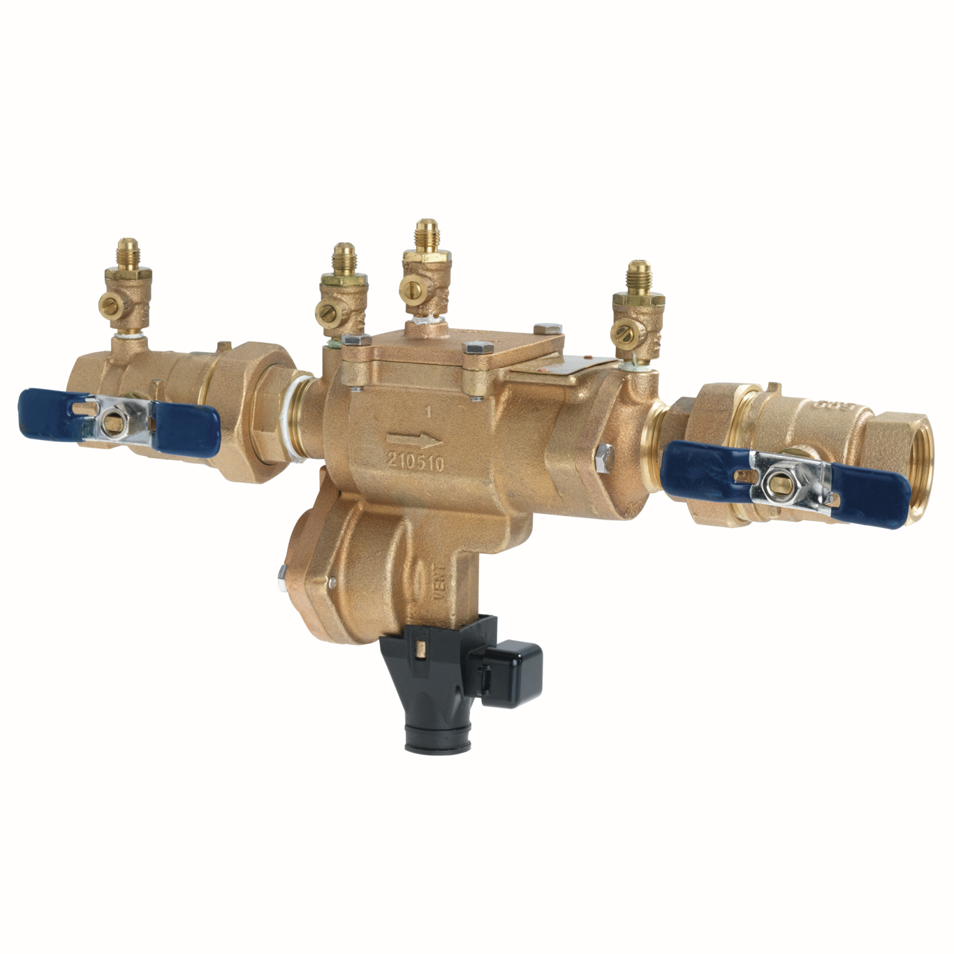 This 1 inch reduced pressure zone backflow preventer assembly prevents the reverse flow of high hazard (toxic) fluids found in the water from entering into the potable water supply due to backsiphonage and or backpressure. It is used in water services to industrial plants, hospitals, morgues, mortuaries, and chemical plants and it is also used in irrigation systems, boiler feed, water lines and other installations requiring maximum protection. This assembly consists of a bronze body, threaded quarter turn ball valves with union connections, top mounted test cocks, spring loaded check valves, and a pressure differential relief valve. This backflow assembly contains a flood sensor with SentryPlus Alert(R) technology to detect excessive water discharges from the relief valve. When activated through an add-on sensor connection kit, the flood sensor can send an alert to notify personnel about potential flooding. Add-on sensor connection kits are available for BMS and cellular communications.