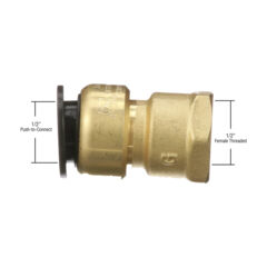 This 1/2 inch CTS X 1/2 inch NPT AquaLock(TM) brass female adapter works with copper, CPVC, PEX, and CTS rated pipe. It is easy to install, no tools or tube inserts are required. The fitting can be used for hot and cold water applications. The unique O-ring guide feature provides a zero-leak connection. Unlike barb fittings, this fitting joins the tubing on the outside, increasing the flow capacity. After a connection has been made even under maximum pressure, the tubing is able to swivel, making the fitting ideal for vibrating and dynamic applications.