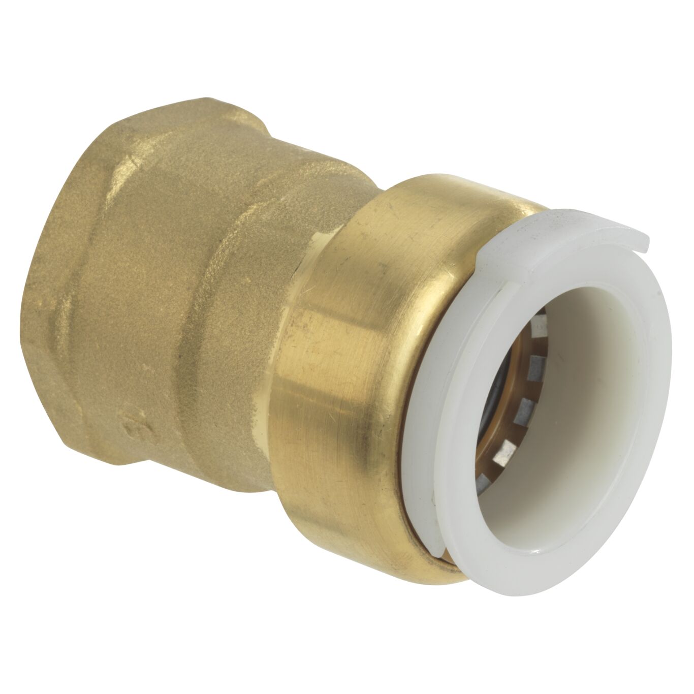 This 3/4 inch PVC IPS x 1 inch NPT AquaLock(TM) brass female adapter connects schedule 40 PVC pipe to copper, CPVC, PEX, and CTS rated pipe. It is easy to install, no tools or tube inserts are required. The fitting can be used for hot and cold water applications. The unique O-ring guide feature provides a zero-leak connection. Unlike barb fittings, this fitting joins the tubing on the outside, increasing the flow capacity. After a connection has been made even under maximum pressure, the tubing is able to swivel, making the fitting ideal for vibrating and dynamic applications.