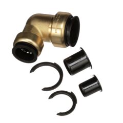 This 1 inch CTS x 3/4 inch CTS AquaLock(TM) brass reducing elbow works with copper, CPVC, PEX, and CTS rated pipe. It is easy to install, no tools or tube inserts are required. The fitting can be used for hot and cold water applications. The unique O-ring guide feature provides a zero-leak connection. Unlike barb fittings, this fitting joins the tubing on the outside, increasing the flow capacity. After a connection has been made even under maximum pressure, the tubing is able to swivel, making the fitting ideal for vibrating and dynamic applications.