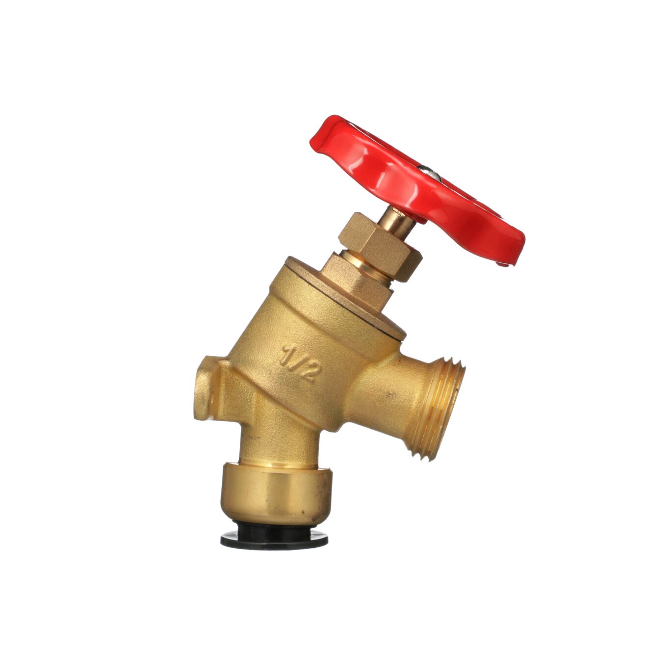 This 1/2 CTS x 3/4 GHT AquaLock(TM) drop ear garden hose valve works with copper, CPVC, PEX, and CTS rated pipe. It is easy to install, no tools or tube inserts are required. The fitting can be used for hot and cold water applications. The unique O-ring guide feature provides a zero-leak connection. Unlike barb fittings, this fitting joins the tubing on the outside, increasing the flow capacity. After a connection has been made even under maximum pressure, the tubing is able to swivel, making the fitting ideal for vibrating and dynamic applications.
