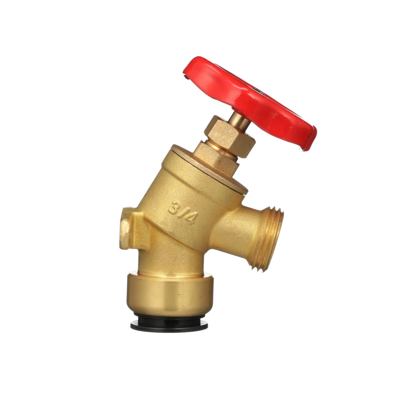 This 3/4 CTS x 3/4 GHT AquaLock(TM) drop ear garden hose valve works with copper, CPVC, PEX, and CTS rated pipe. It is easy to install, no tools or tube inserts are required. The fitting can be used for hot and cold water applications. The unique O-ring guide feature provides a zero-leak connection. Unlike barb fittings, this fitting joins the tubing on the outside, increasing the flow capacity. After a connection has been made even under maximum pressure, the tubing is able to swivel, making the fitting ideal for vibrating and dynamic applications.