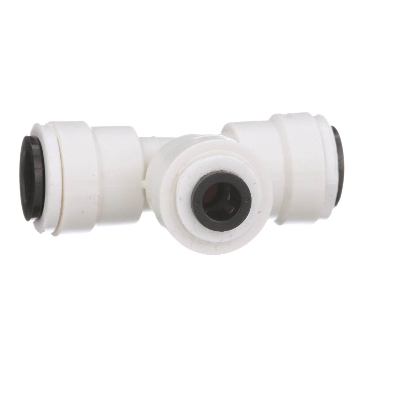 This 3/8 inch x 3/8 inch x 1/4 inch OD AquaLock(TM) mini reducing tee works with plastic or soft copper tubing. It is easy to install, no tools or tube inserts are required. The fitting can be used for hot and cold water applications. The unique O-ring guide feature provides a zero-leak connection. Unlike barb fittings, this fitting joins the tubing on the outside, increasing the flow capacity. After a connection has been made even under maximum pressure, the tubing is able to swivel, making the fitting ideal for vibrating and dynamic applications.