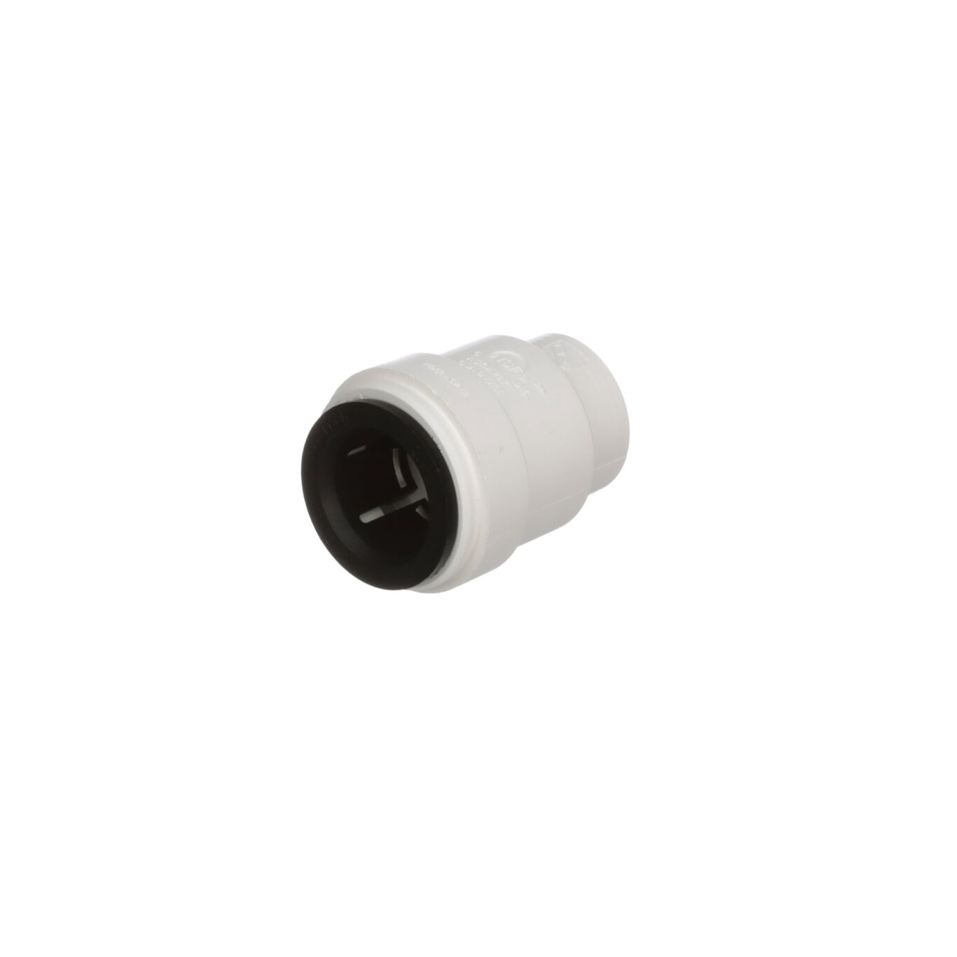 This 3/8 inch CTS AquaLock(TM) plastic end cap works with copper, CPVC, PEX, and CTS rated pipe. It is easy to install, no tools or tube inserts are required. The fitting can be used for hot and cold water applications. The unique O-ring guide feature provides a zero-leak connection. Unlike barb fittings, this fitting joins the tubing on the outside, increasing the flow capacity. After a connection has been made even under maximum pressure, the tubing is able to swivel, making the fitting ideal for vibrating and dynamic applications.