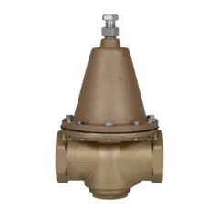 This 3 inch super capacity lead free water pressure reducing valve is commonly installed at the meter in residential, commercial and industrial buildings. It is designed to control the water pressure flowing to all the appliances and outlets within the building and provides an inexpensive means of supplying lower, more functional water pressure to outlets and appliances. It features a lead free cast copper silicon alloy body, bypass to control thermal expansion pressure, NPT threaded female inlet with strainer by NPT female threaded outlet, high temperature resisting enlarged diaphragm for hot or cold temperatures, a sealed spring cage and seat orifice for super capacity performance. This valve can be used for accessible outdoor waterworks or pit installations. The adjustable reduced pressure range is 25 to 75 psi (172 to 517 kPa).