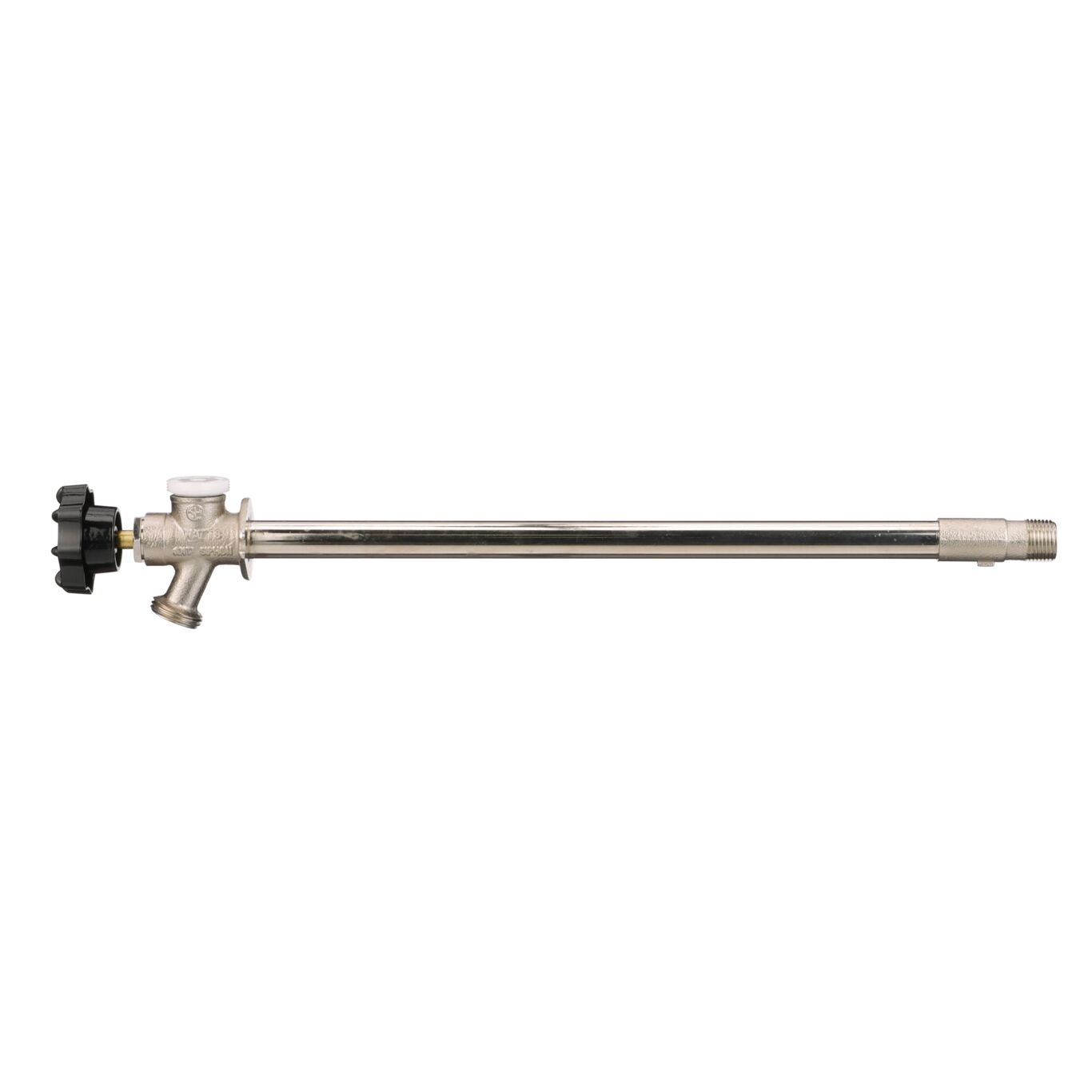 This 14 inch lead free frost proof automatic draining wall hydrant is used in commercial and residential applications to provide freeze protection for the external water supply. Designed for easy field service with a replaceable bibb washer to allow for repair inline without removing sill cock from the water line. It also includes a lead free brass vacuum breaker to provide backflow protection to the potable water supply. This wall hydrant consists of a lead free brass body with nickel plated finish, 0.8 MM thick copper tube, allows for 1/2 inch solder or male IPS inlet, 3/4 inch hose outlet, and a steel hand wheel.