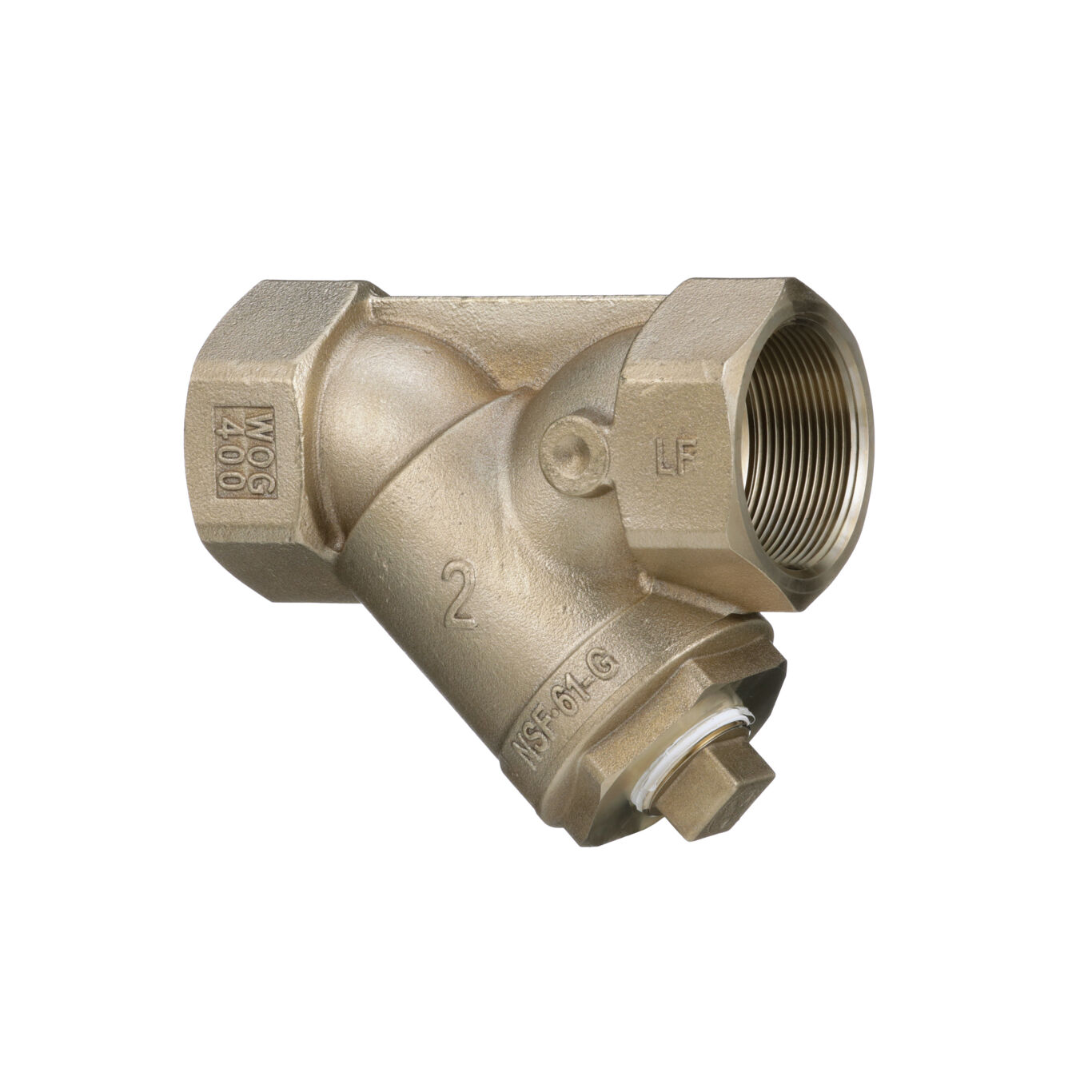 This 2 inch lead free wye pattern strainer is designed to protect system components from dirt, rust, and other damaging debris in the piping system. It has a retainer cap tapped for closure plug, threaded end connections, and a 20 mesh stainless steel screen.